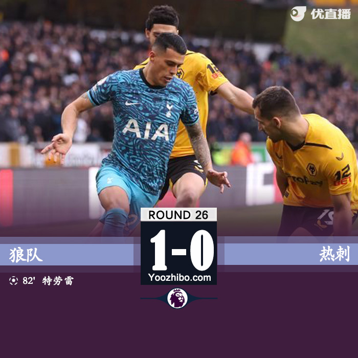 北京时间3月4日23:00,2022-23赛季英超联赛第26轮,热刺客场挑战狼队。上半场迭戈-科斯塔伤退,波罗任意球中框,两队暂0-0战平;下半场孙兴慜射中横梁,特劳雷补射破门,热刺0-1狼队,结束英超2连胜,仍然排在第四位。