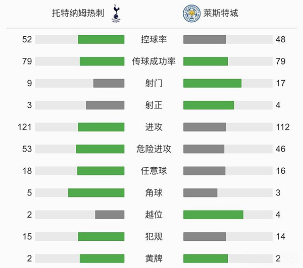 查看:热刺vs莱斯特城 全场录像技术统计: