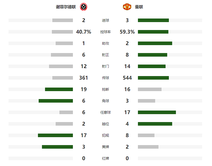 查看:谢菲尔德联vs曼联 全场录像 技术统计: